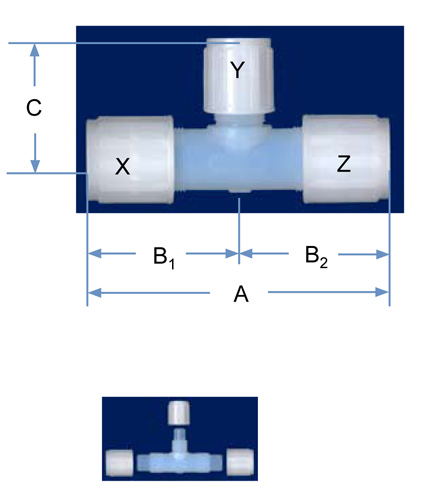 | PFA Part No. | X | Y | Z | Orifice | A | B1 | B2 | C |